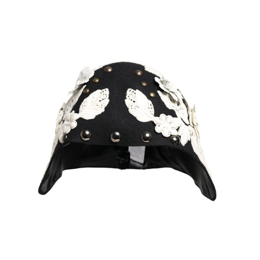 Dolce & Gabbana Black Lace Floral Applique Cotton Veil Hat