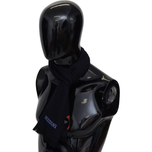 Missoni Black 100% Wool Unisex Neck Wrap Fringes Logo Scarf