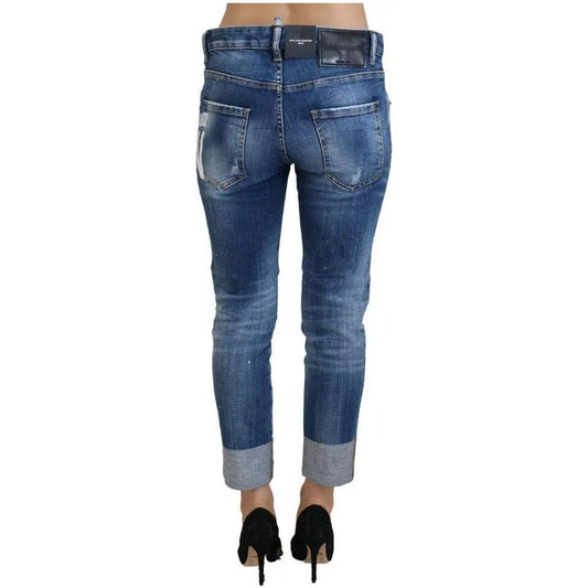 Dsquared² Blue Tattered Mid Waist Cropped Twiggy Denim Jeans