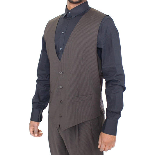 Dolce & Gabbana Brown Striped Stretch Dress Vest