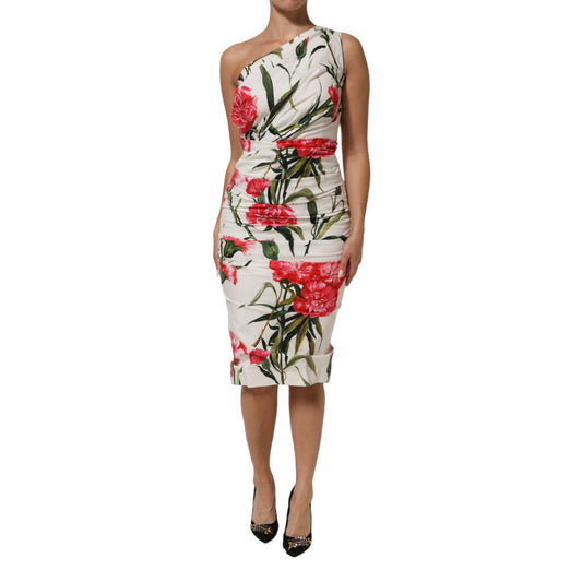 Dolce & Gabbana White Floral One Shoulder Sheath Dress
