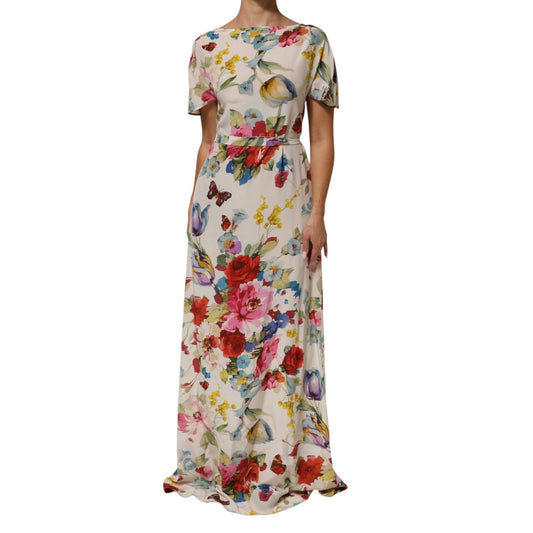 Dolce & Gabbana White Floral Print Silk Sheath LongGown Dress