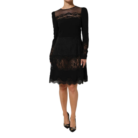 Dolce & Gabbana Black Floral Lace Trim Sheath A-line Dress