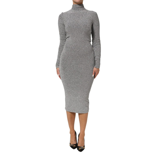 Dolce & Gabbana Gray Nylon Bodycon Sheath Long Sleeves Dress