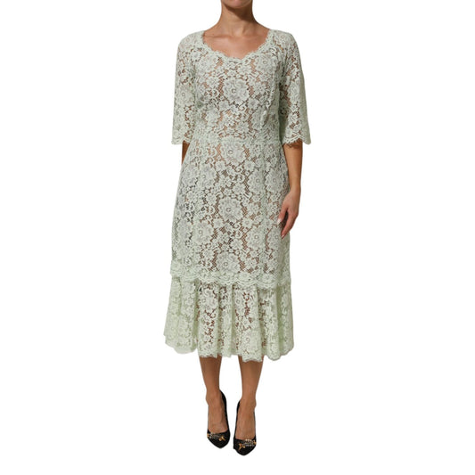 Dolce & Gabbana Mint Green Floral Lace Trim Midi Dress