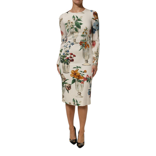 Dolce & Gabbana Multicolor Floral Print SilkSheath Midi Dress