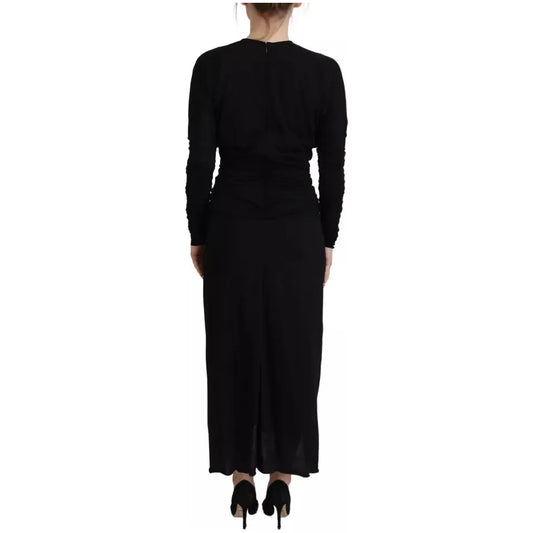 Dolce & Gabbana Black Sheath Midi Gown Wool Wrap Dress