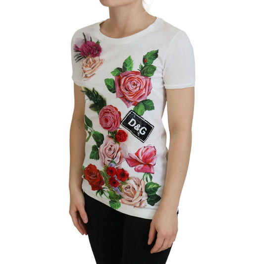 Dolce & Gabbana White Rose DGLogo Printed Short Sleeves Top