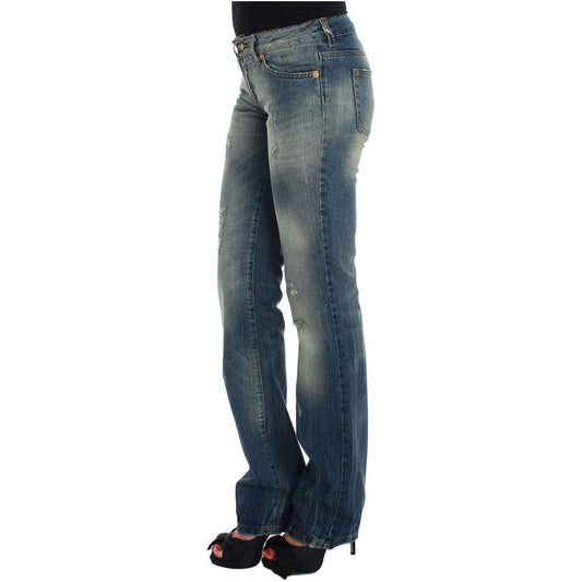 Cavalli Blue Wash Torn Cotton Straight Fit Jeans