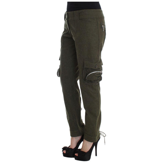 Ermanno Scervino Green Wool Blend Loose Fit Cargo Pants