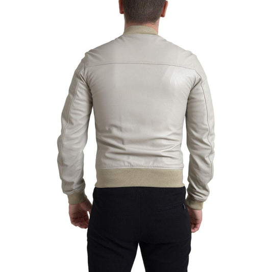 Dolce & Gabbana Cream Leather Bomber Blouson Full Zip Jacket