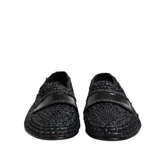 Dolce & Gabbana Black Woven Leather Slip On Loafers Men Shoes