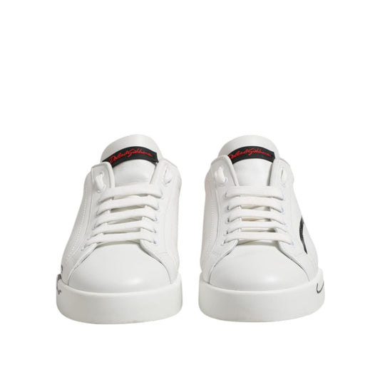 Dolce & Gabbana White Leather Printed Low Top Sneakers Shoes