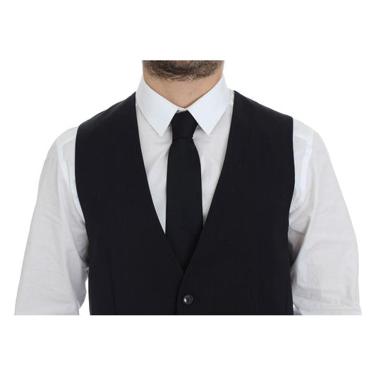 Dolce & Gabbana Gray Striped Wool Silk Dress Vest Gilet