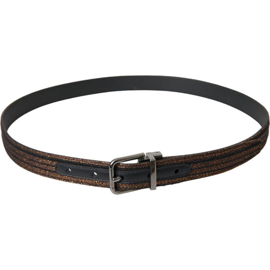 Dolce & Gabbana Gold Leather Jacquard Silver Metal Buckle Belt