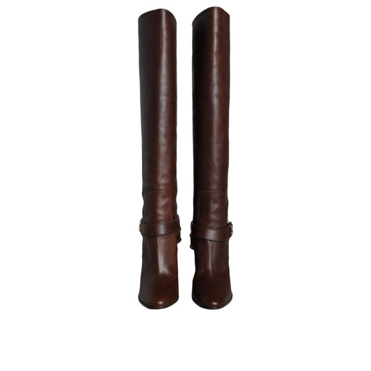 Dolce & Gabbana Brown Leather Gold Tone Logo High Boots Shoes